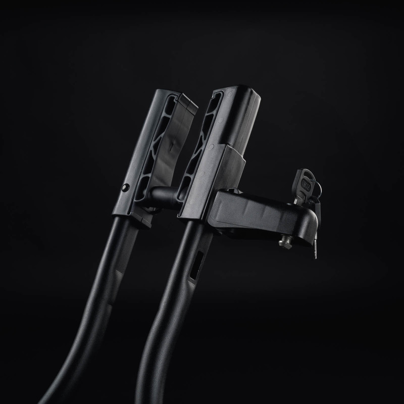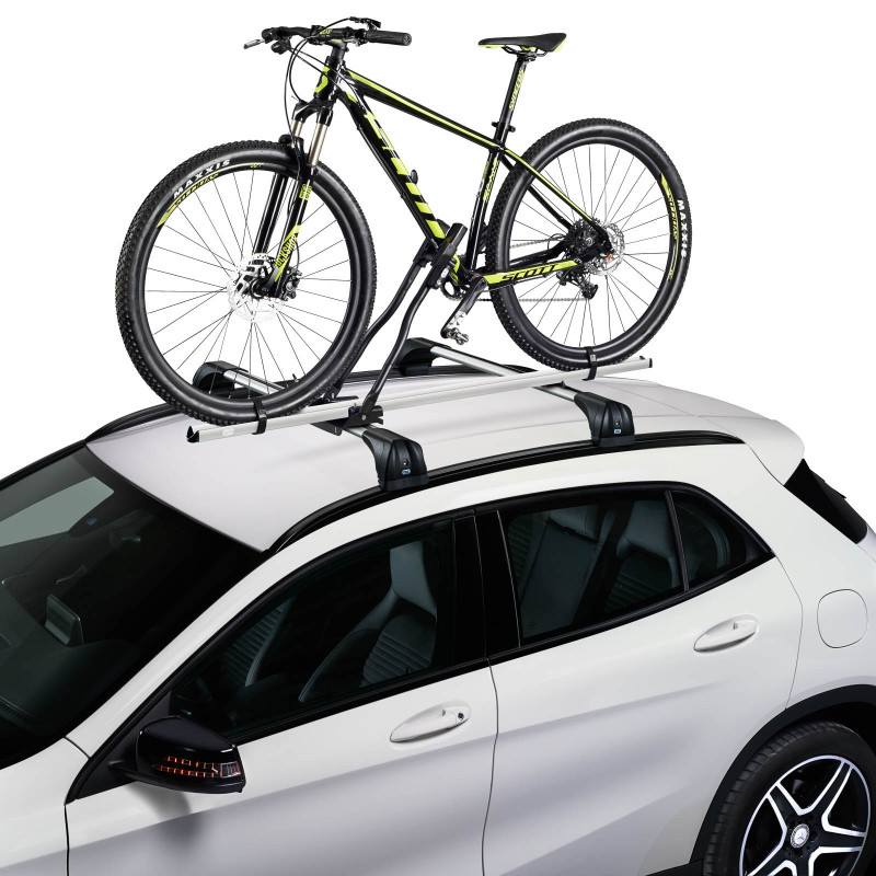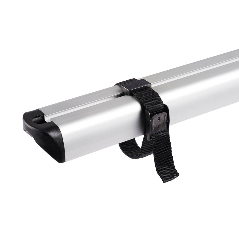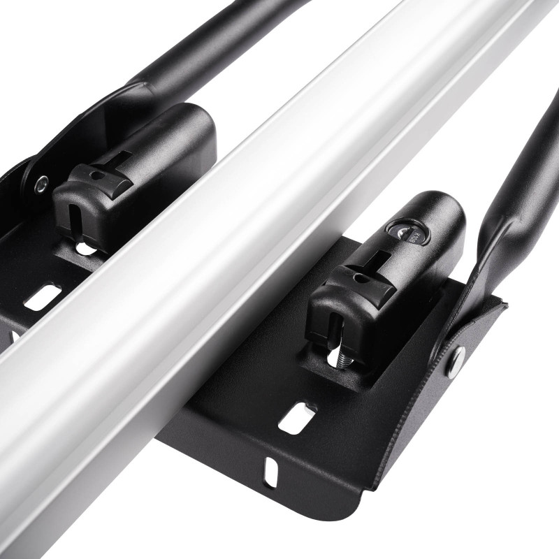 Functional design with an excellent combination of high quality materials. Easy to be fitted around the bars as well as directly to the T-tracks of aluminium bars. Renewed fixing system, the clamps for the frame have a new design that prevents the bicycle from moving even if the tightening torque has not been completely tightened. In addition, the new handle adjusts and frees the bicycle with just one movement. Soft rubber claws for the bike frame and for the pieces which are likely to be in contact with the frame tubes. This guarantees a higher protection. Reinforced bike holders which guarantee a safe transport of bikes up to 18 kg. The aluminium rail of the bike carrier is longer, which makes it compatible with bicycles up to 1350 mm wheelbase. Suitable for most types of bike frames Quick release straps. The straps can be fitted to the T-track of the bike carrier for a higher comfort. High safety locking system for the bike carrier and the bikes.
