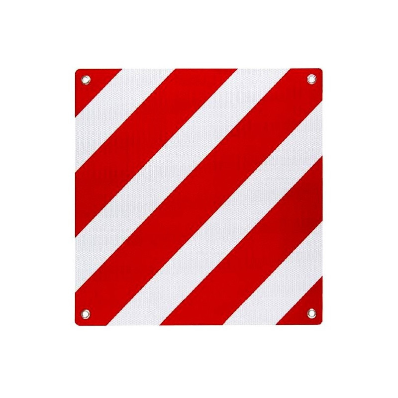 Approved and mandatory plate for the signaling of the load that protrudes through the rear part of the vehicle.